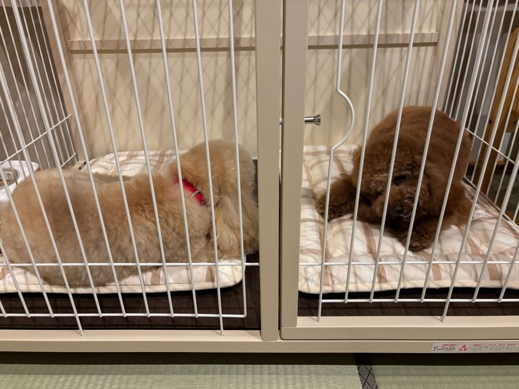 お部屋はツインベッドに犬用の大きめのサークルがあって大人二人だったら十分な広さでした!